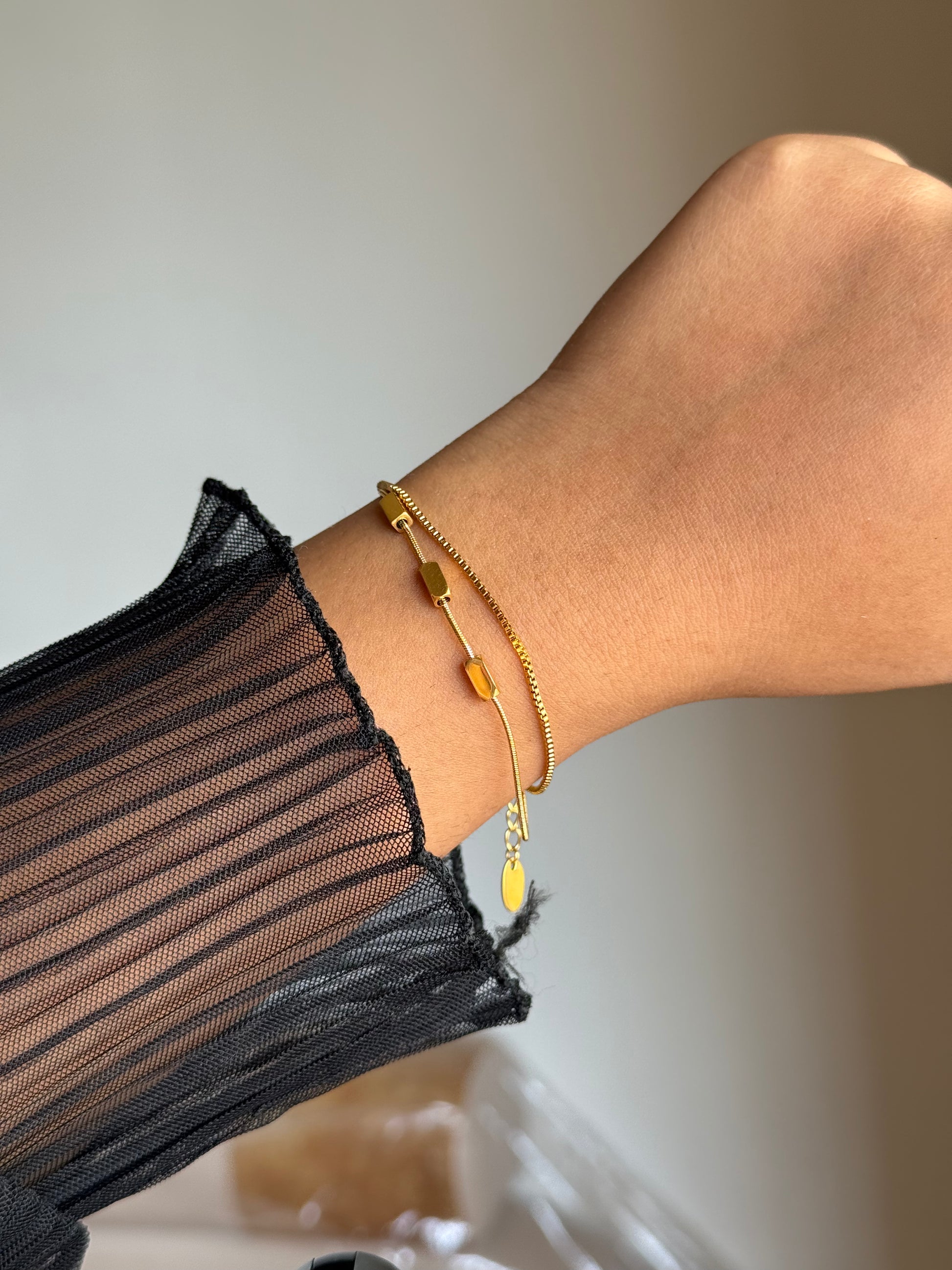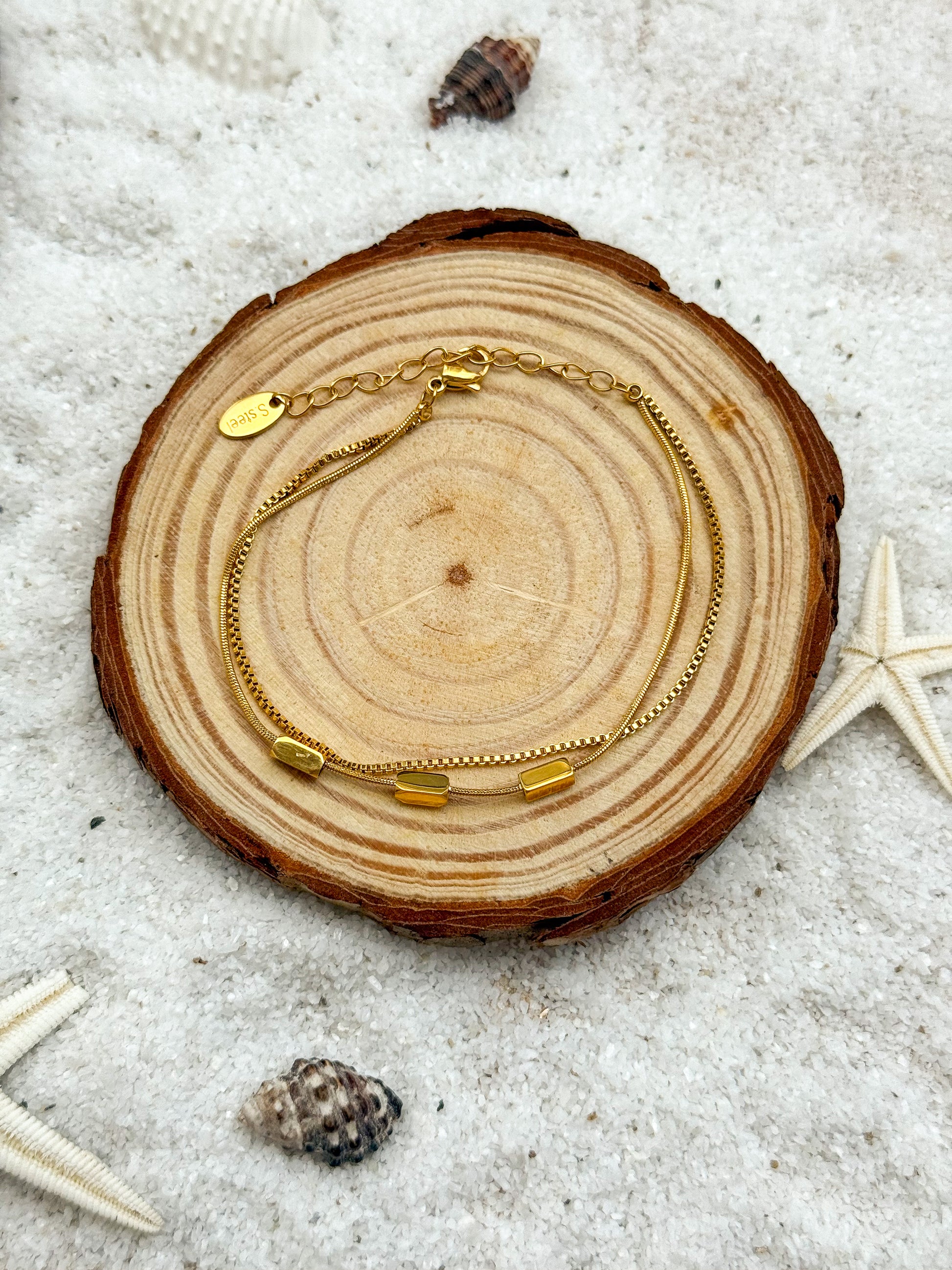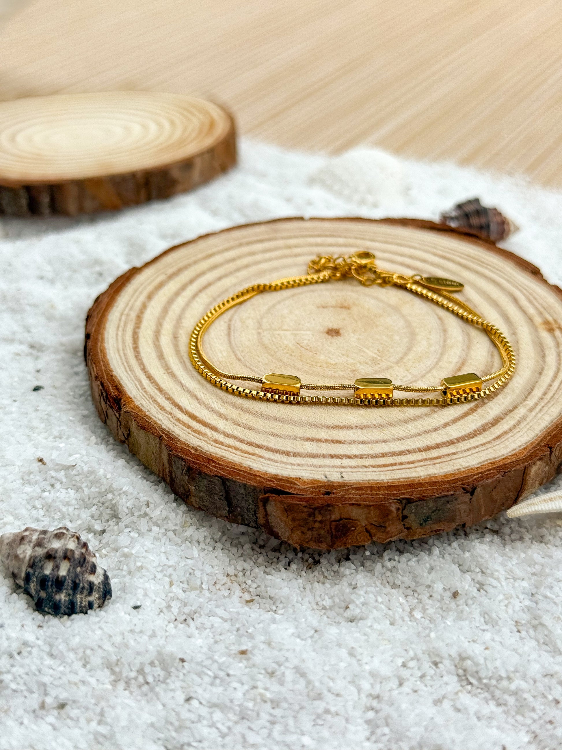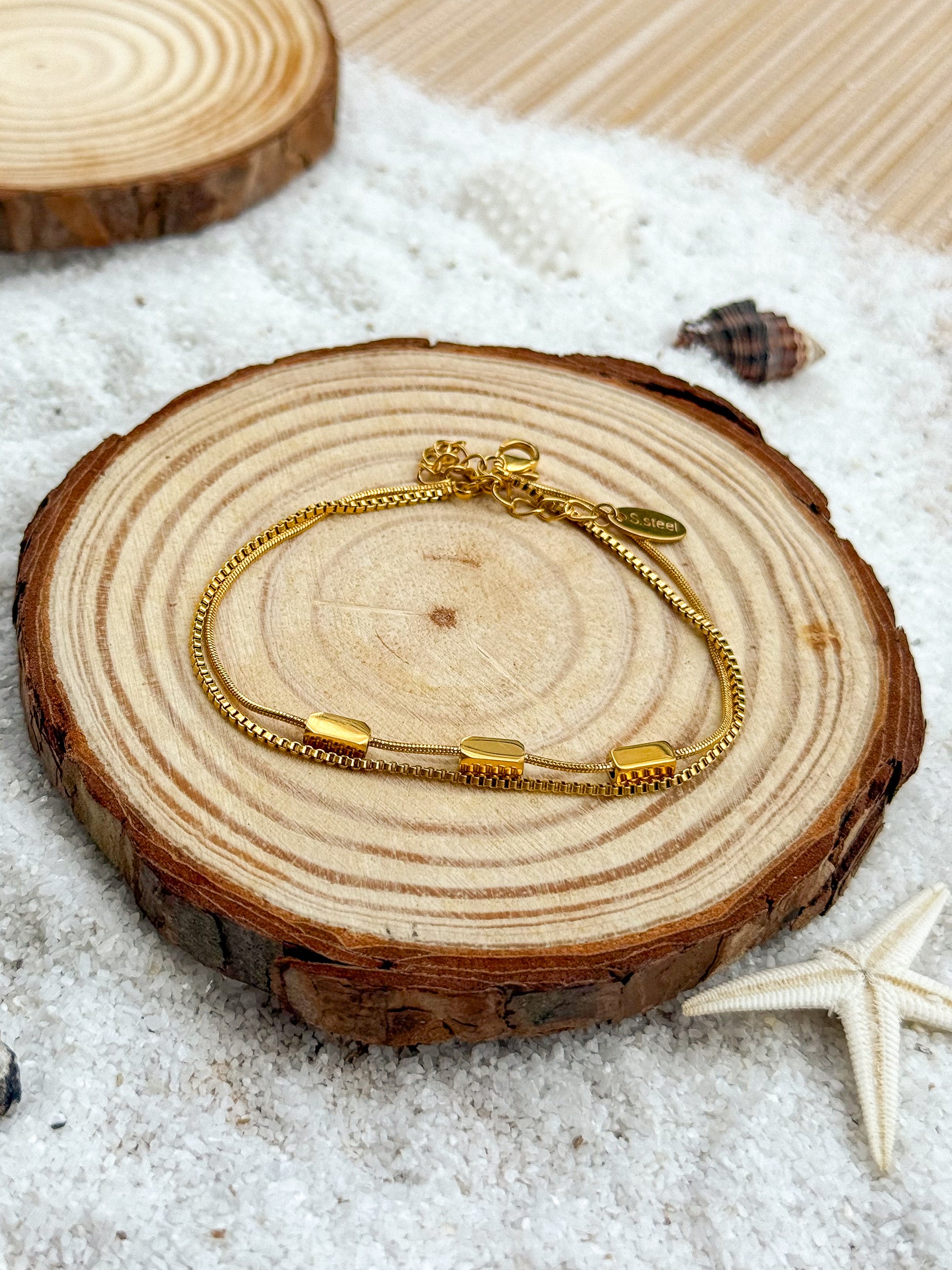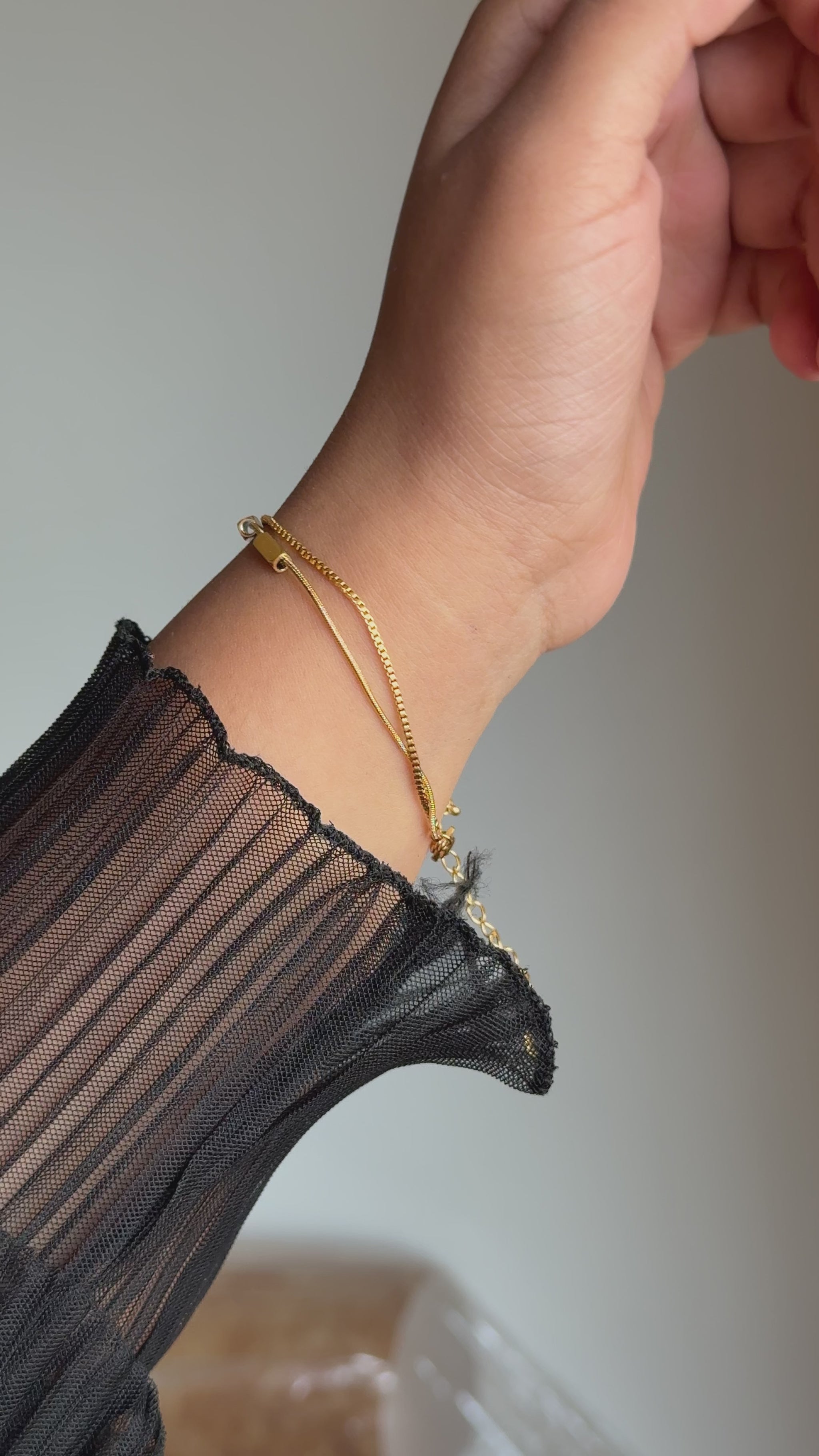 Elevate your everyday elegance with the Golden Grace Bracelet — a minimalist yet statement-making accessory crafted for modern sophistication. With its sleek dual-chain design and polished gold-toned accents, this bracelet adds a refined sparkle to your wrist. Wear it solo for a subtle touch or layer it up for a bold, trendy stack.