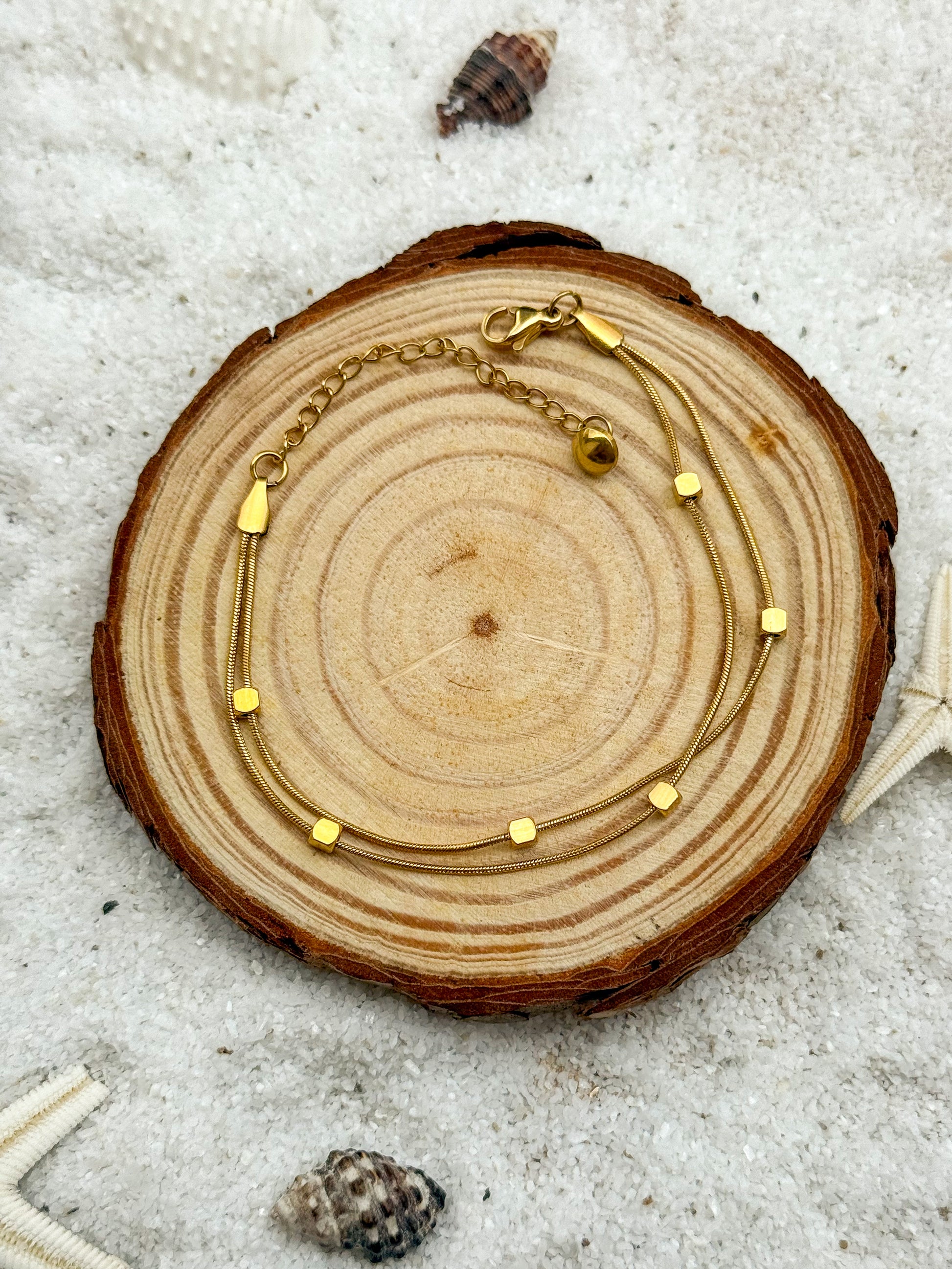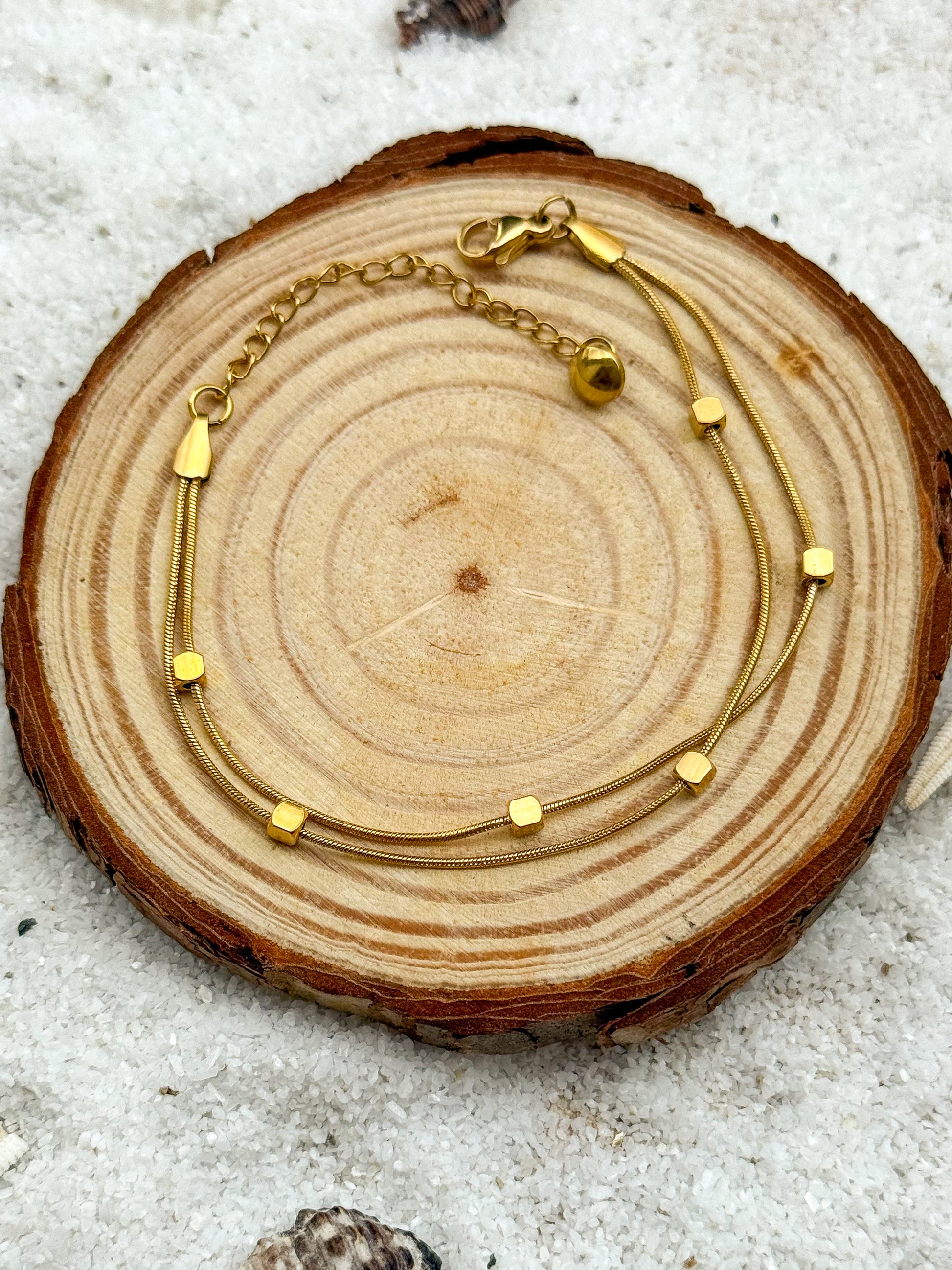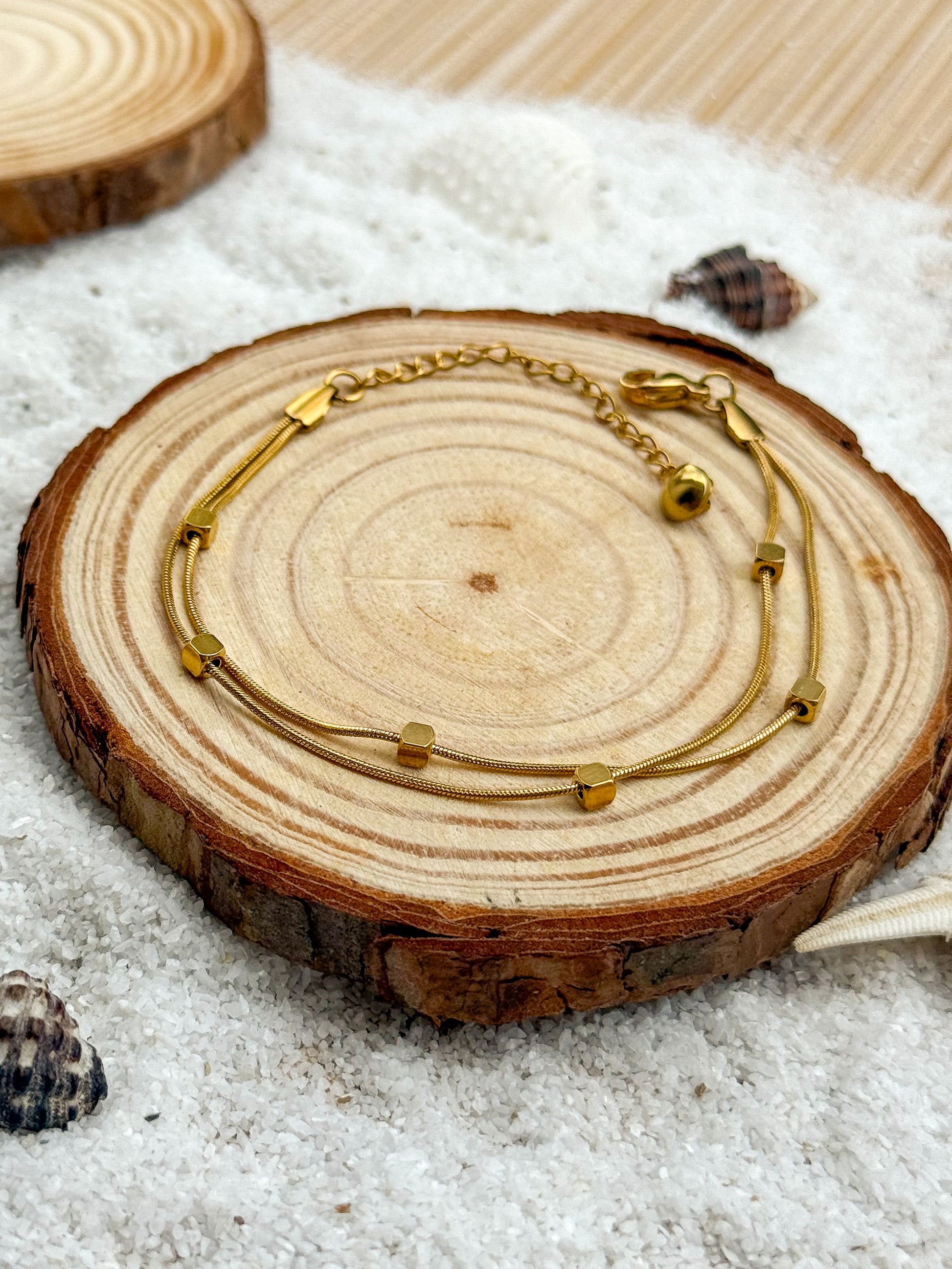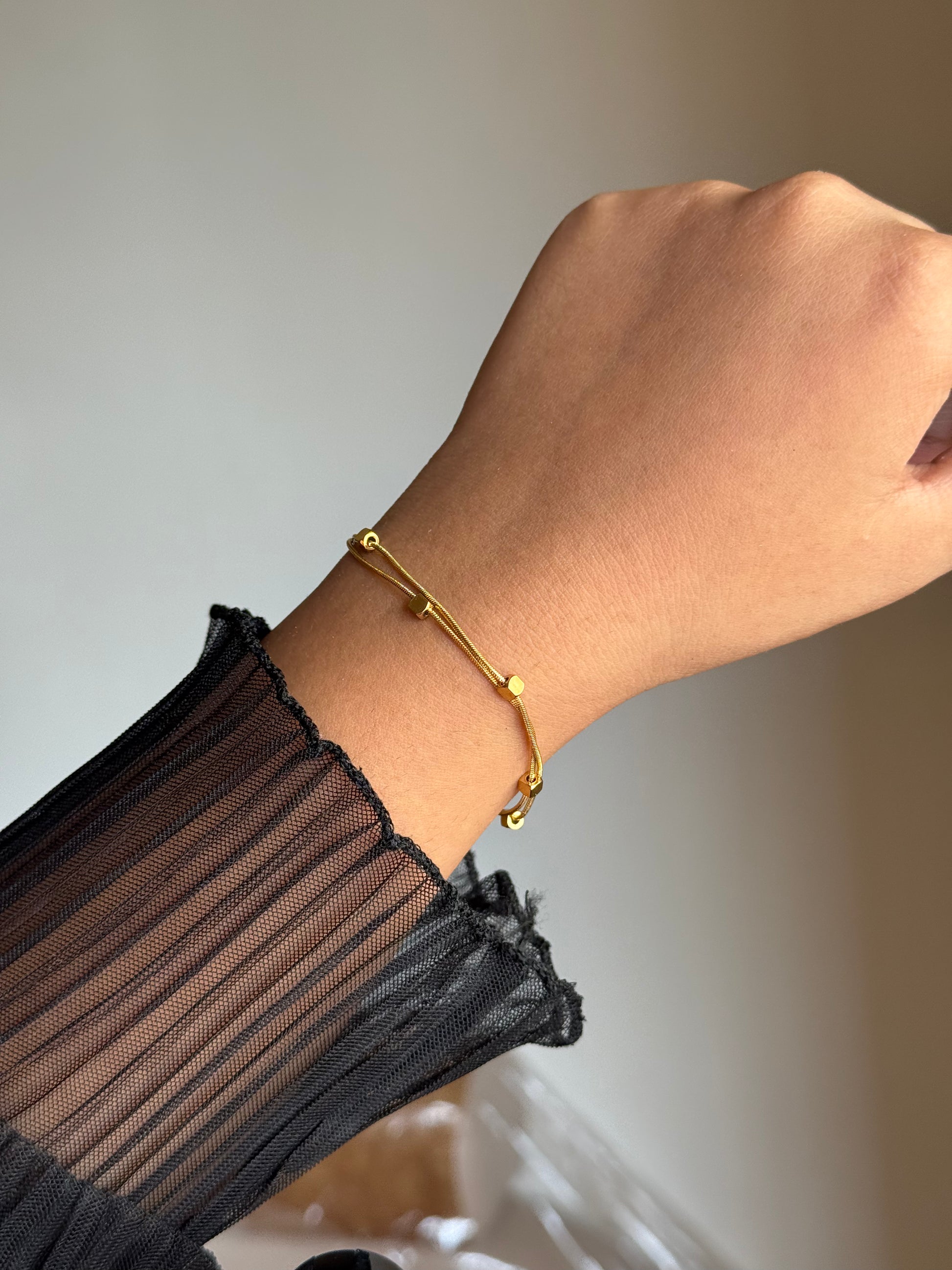 Elevate your everyday elegance with the Golden Grace Bracelet — a minimalist yet statement-making accessory crafted for modern sophistication. With its sleek dual-chain design and polished gold-toned accents, this bracelet adds a refined sparkle to your wrist. Wear it solo for a subtle touch or layer it up for a bold, trendy stack.