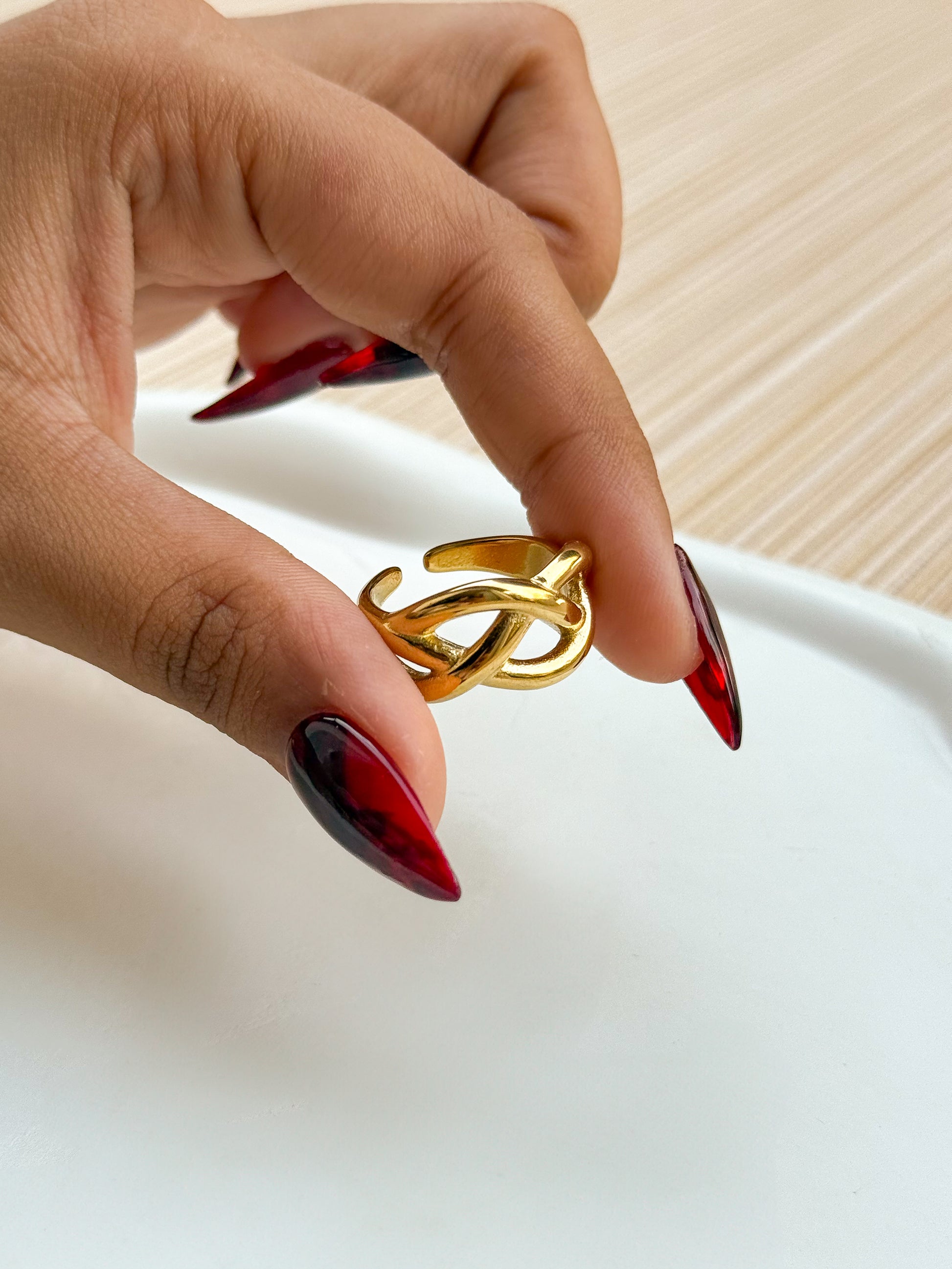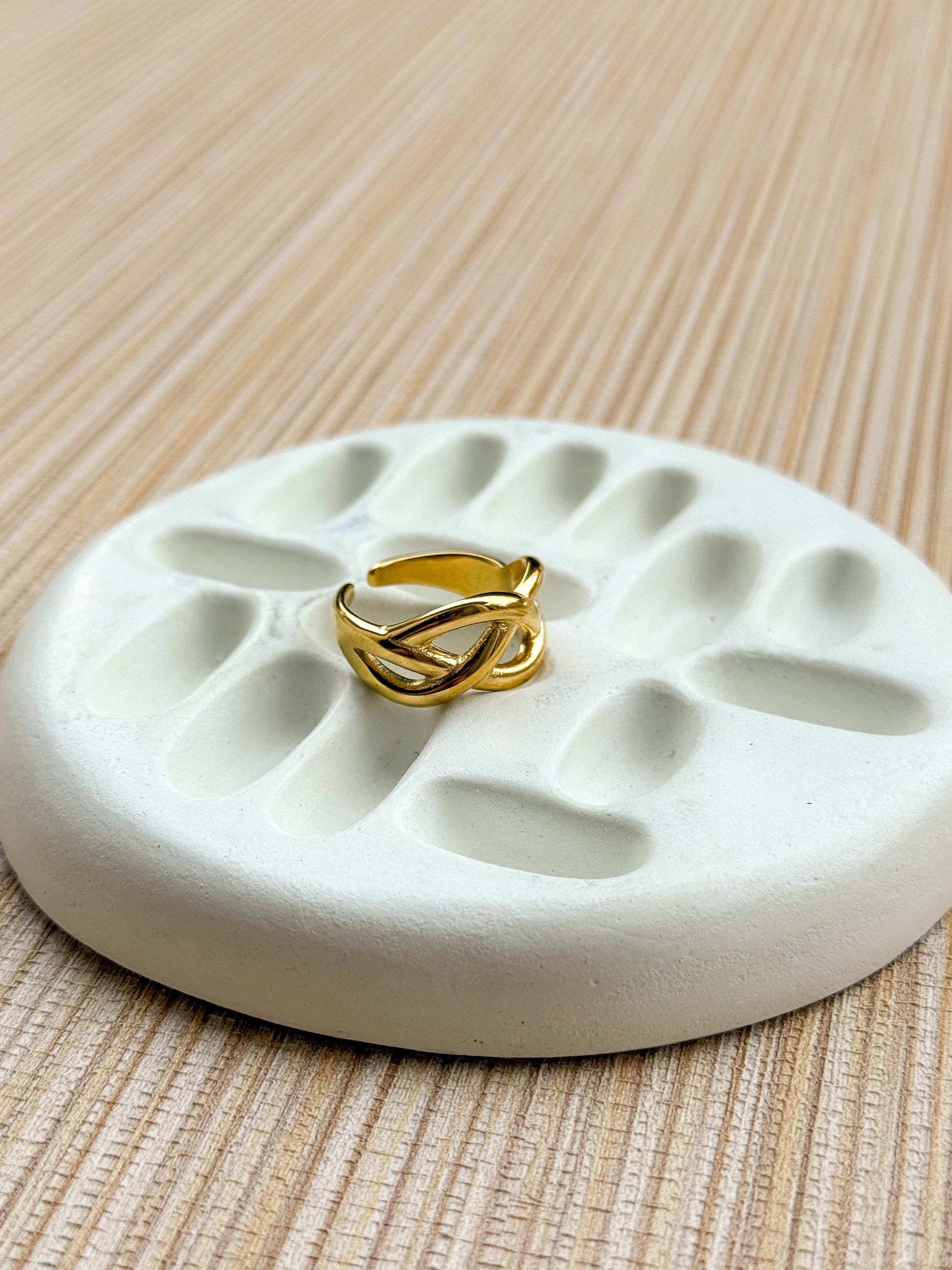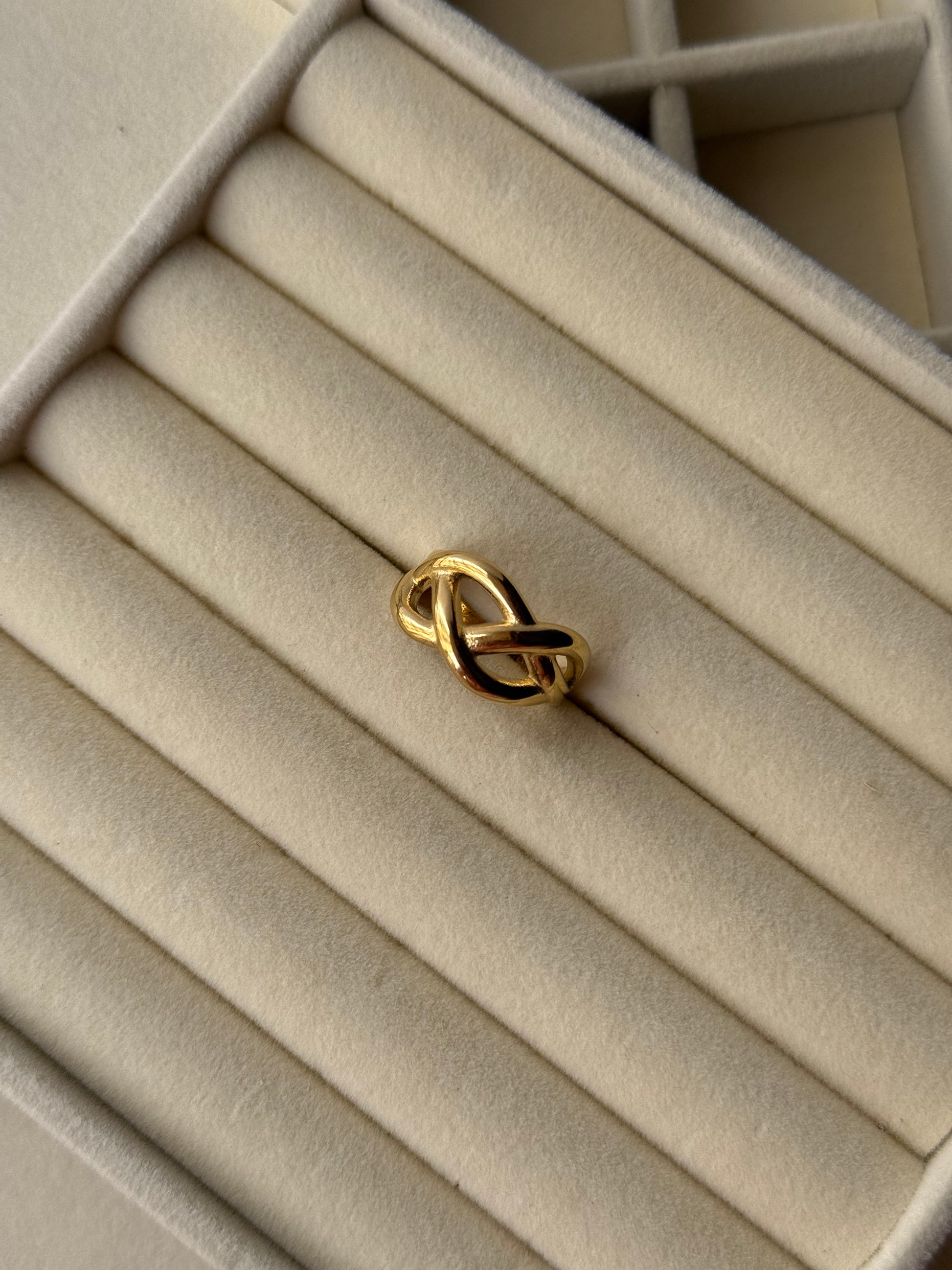 Symbolizing eternity and connection, the Infinity Twist Ring is a timeless piece with a modern edge. Crafted with a fluid double-loop design and finished in luxurious 18K gold plating, this ring is a refined statement of style and sentiment. The smooth curves and minimalist structure make it perfect for everyday wear or special occasions. Designed with premium stainless steel for durability and comfort.