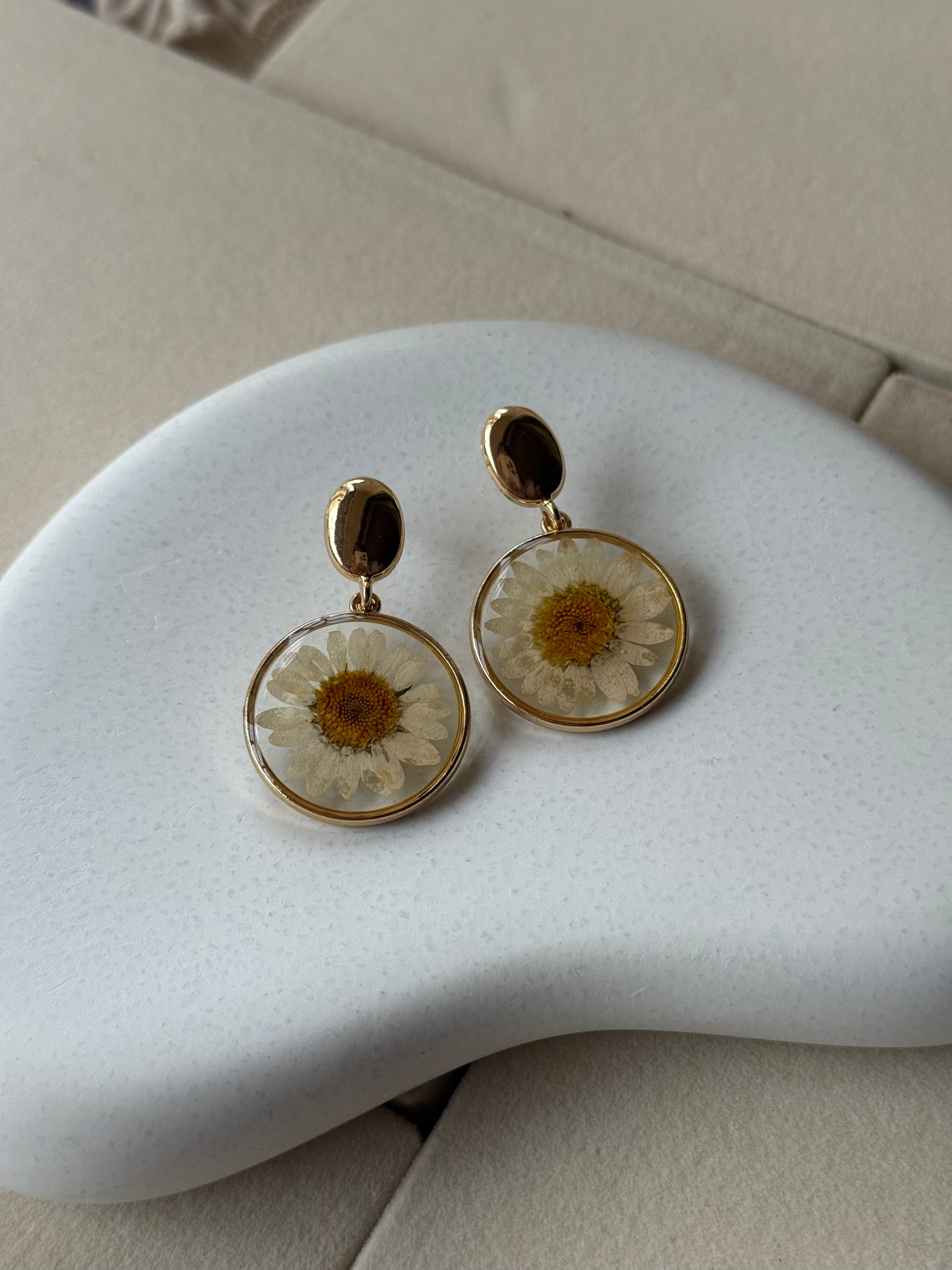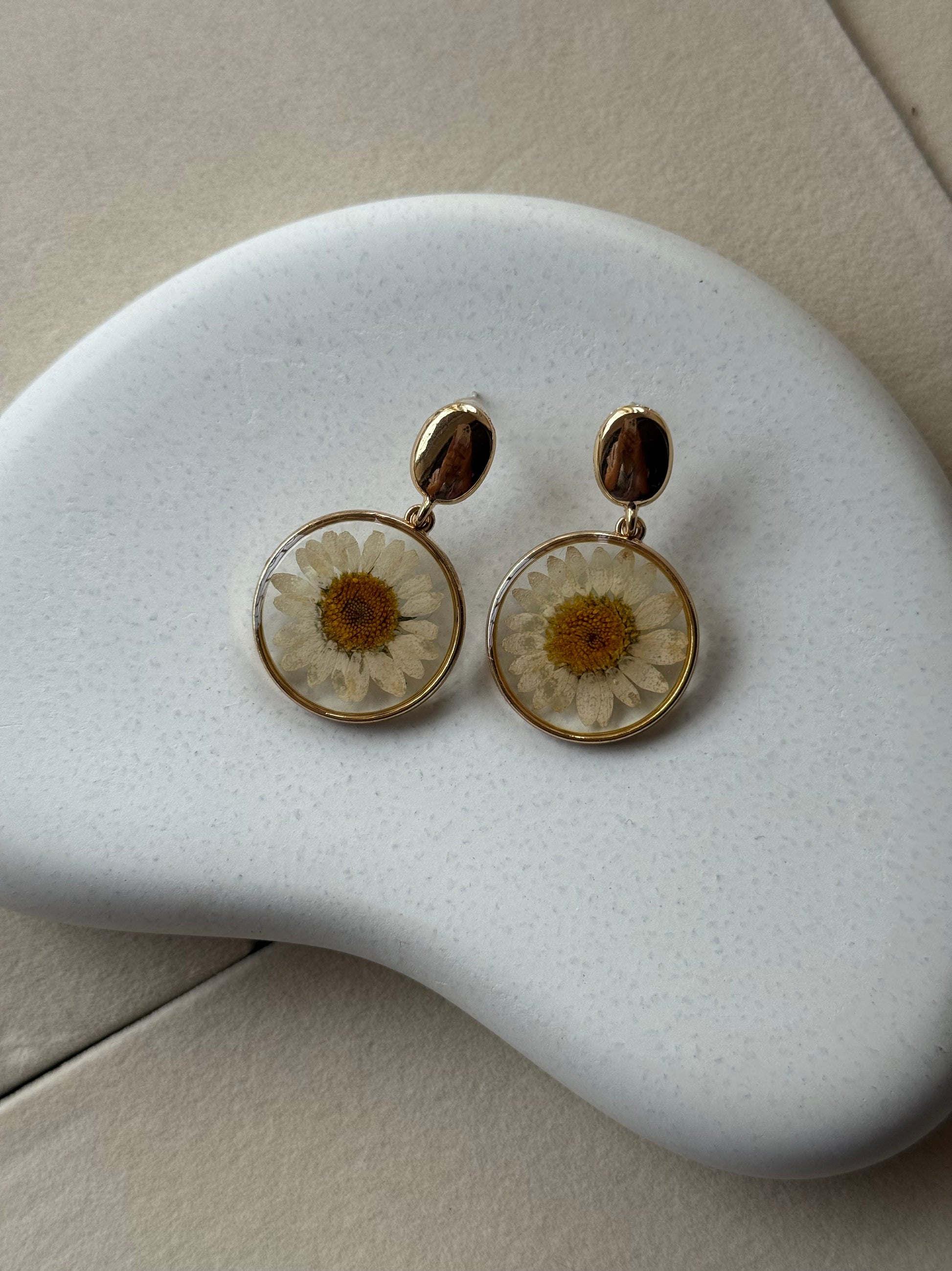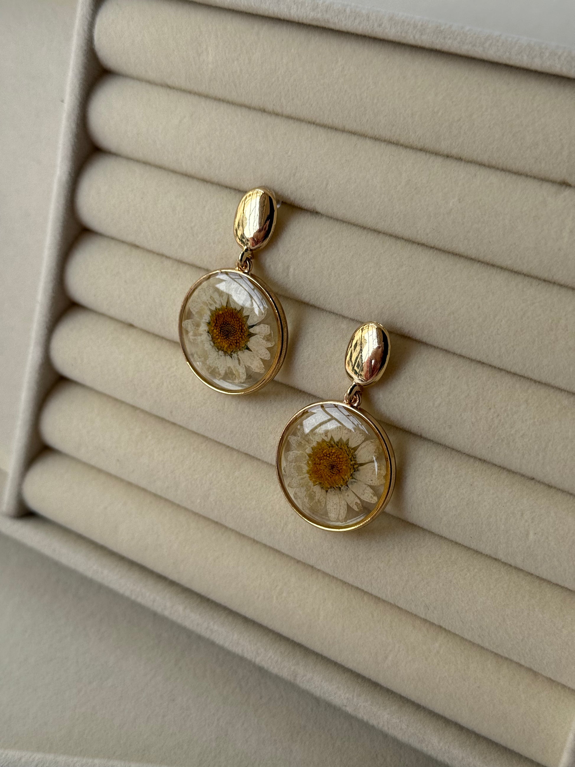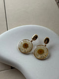 Delicate and nature-inspired, these handcrafted resin stud earrings feature real dried flowers beautifully preserved in crystal-clear resin. Set in a sleek round frame with a polished finish, these earrings offer a minimalist yet charming appeal, perfect for everyday wear or thoughtful gifting.