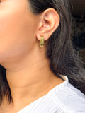Add a touch of elegance to your party look with these beautifully crafted earrings. Featuring a luxurious plated gold finish, these earrings are designed to elevate any outfit with their chic and timeless appeal.