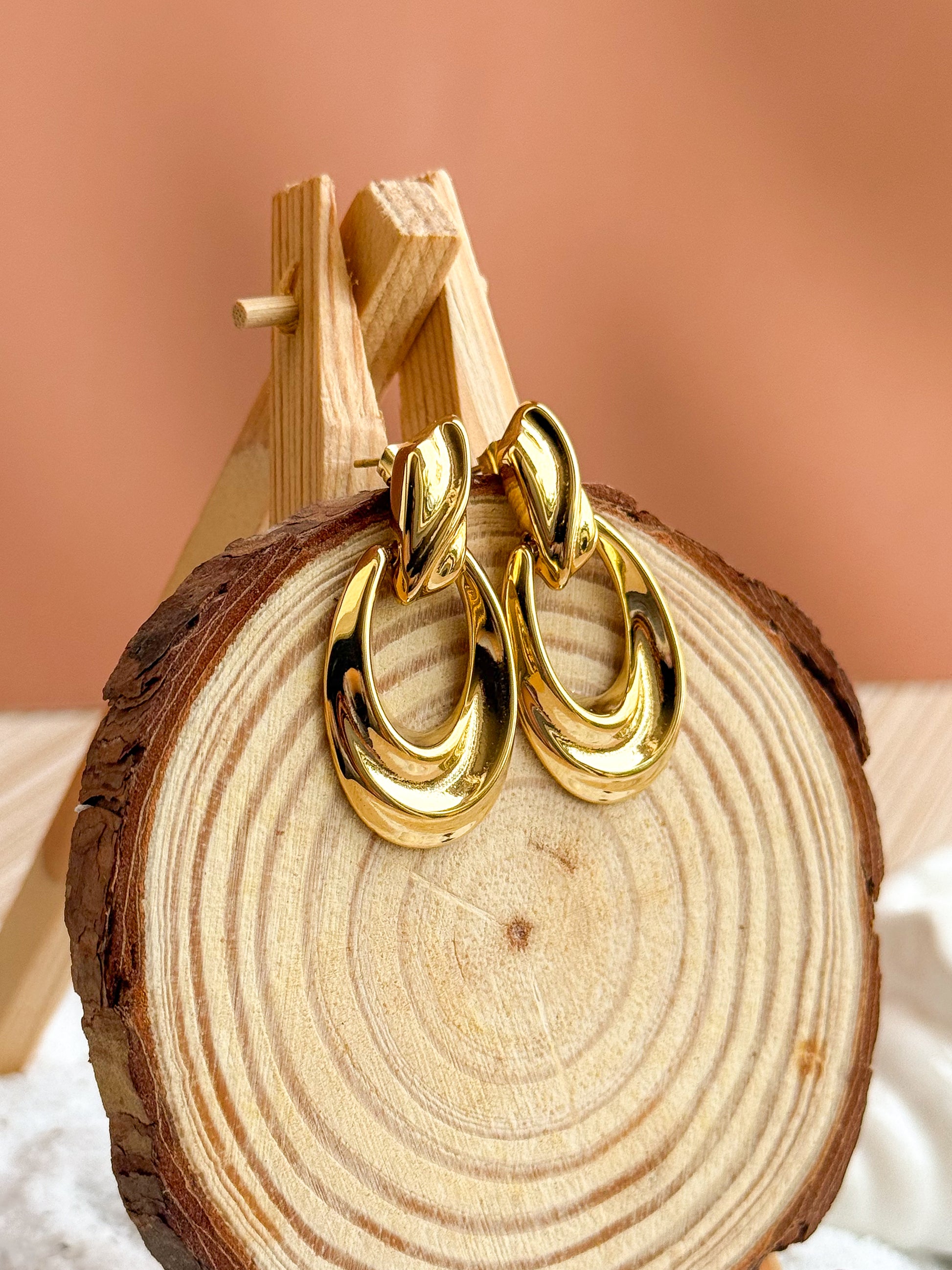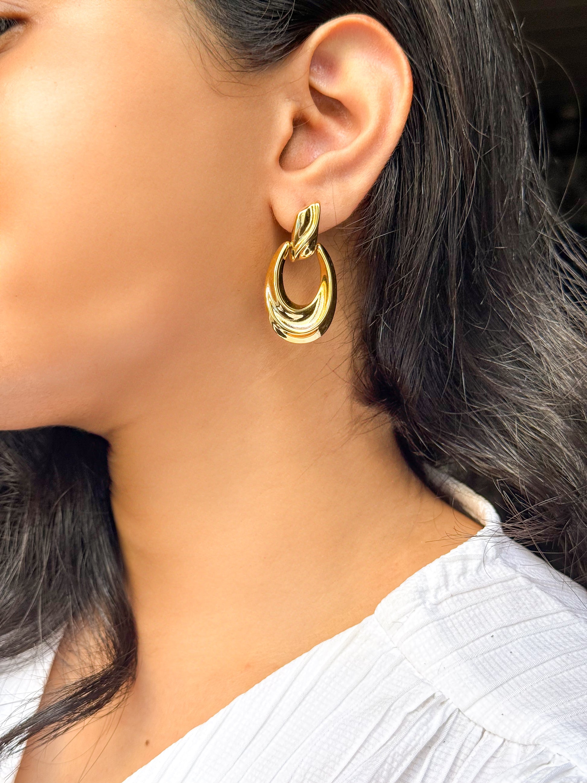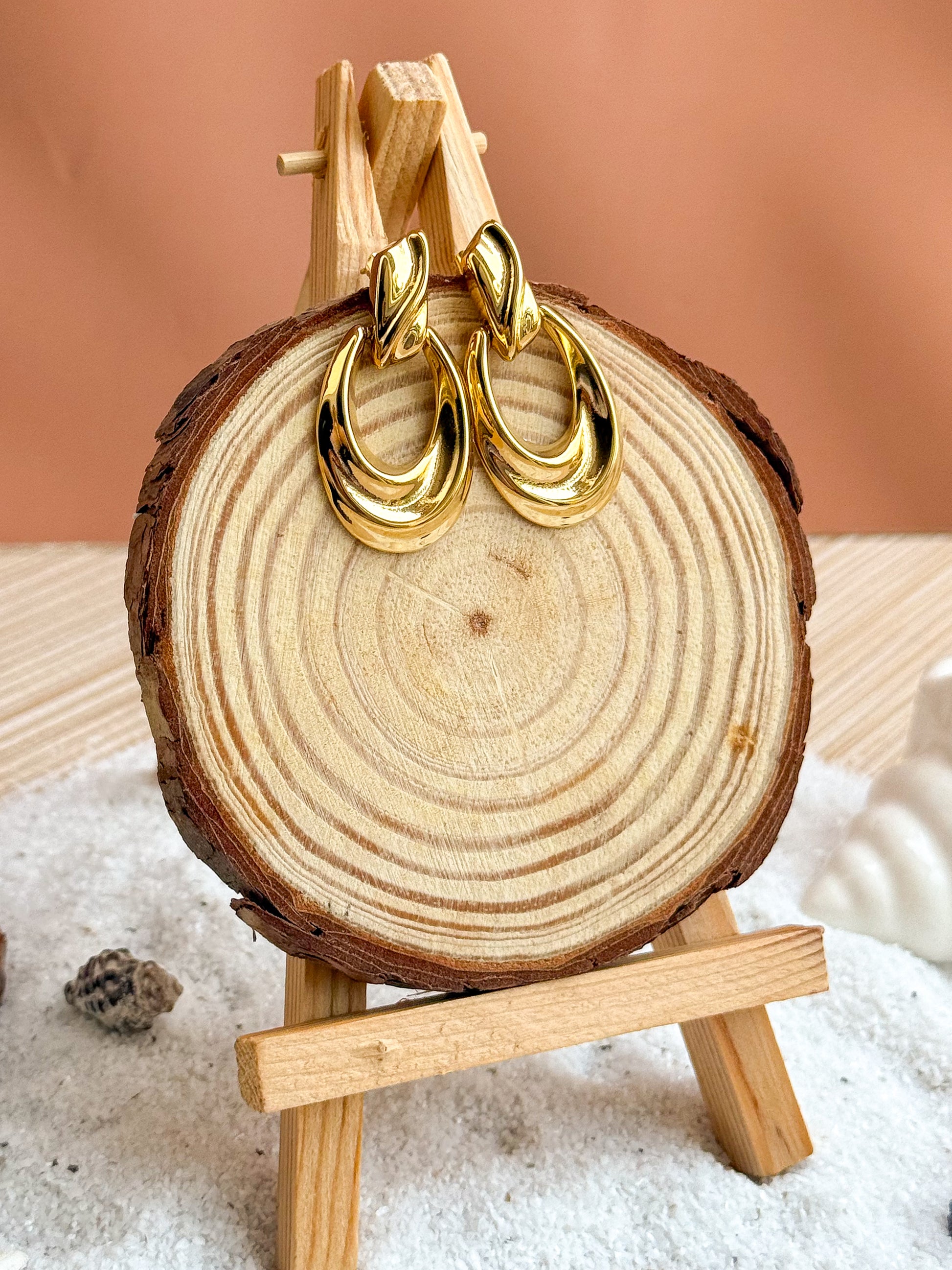 Add a touch of elegance to your party look with these beautifully crafted earrings. Featuring a luxurious plated gold finish, these earrings are designed to elevate any outfit with their chic and timeless appeal.
